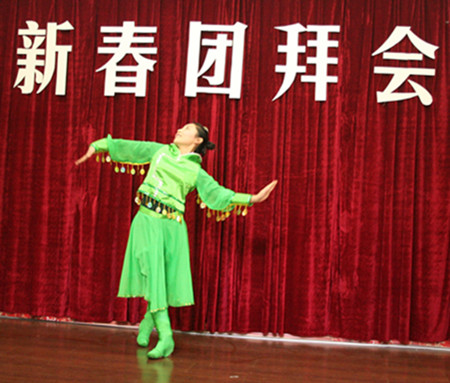 團拜會上經(jīng)管部6位職工以一曲女聲小合唱《嗨歌》拉開文藝演出的序幕,激情動感、惟妙惟肖的表演博得觀眾的熱烈喝彩。江海部劉青朗誦的《一封家書》,敘述著女兒對父親安全的牽掛,感人備至,娓娓動聽。江海部余玥玥表演的蒙古族舞蹈《鴻雁》 飄逸優(yōu)美、輕盈靈動,一招一式仿若讓人置身廣袤草原,令人心曠神怡,將演出推向高潮。演出的節(jié)目內(nèi)容豐富,形式多樣,有悅耳動聽的合唱獨唱,有器樂悠揚的獨奏,有抑揚頓挫的朗誦,有婀娜多姿的舞蹈等等。整場演出亦歌亦舞、精彩紛呈,臺下雷鳴般的掌聲使演出更顯喜慶歡樂。