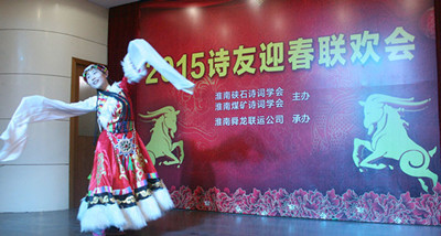 舜龍公司董事長、淮南煤礦詩詞學會副會長、淮南硤石詩詞學會副會長余龍懷首先致歡迎辭。他說,今天室外陽光明媚、春寒料峭,室內春意濃濃、春光無限,騷客云集,高朋滿座。古人云:有朋自遠方來,不亦樂乎。今天,我懷著十分激動、十分快樂的心情熱烈歡迎各位朋友的到來?;茨铣埵娫~學會和淮南煤礦詩詞學會把2015年詩友迎春聯歡會放在我們公司舉辦,為各位詩友了解我們公司,為舜龍公司結識更多的詩友提供了一個平臺,創(chuàng)造了一個機會,在此衷心感謝淮南硤石詩詞學會和淮南煤礦詩詞學會對我公司的高看和厚愛?;茨纤待埞窘陙韲@企業(yè)的文化建設,開展了詩教先進單位的創(chuàng)建活動,在創(chuàng)建的過程中,得到了省詩詞協會、淮南硤石詩詞學會、淮南煤礦詩詞學會以及各位領導、詩友們的指導幫助,在此,我代表舜龍公司領導班子以及舜龍公司的詩友們向所有給舜龍公司關愛和支持的同志們表示衷心的感謝。尤其在舜龍公司成立20周年之際,淮南硤石詩詞學會和淮南煤礦詩詞學會的詩友們?yōu)楣咀V寫了一首首頌歌,填寫了一篇篇詞作,我們舜龍人心存感激,永遠銘記。