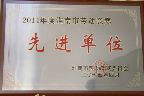 4月30日下午,淮南市慶祝“五一”國際勞動節(jié)暨勞動競賽推進大會在市總工會二樓會議室召開。會上,舜龍公司被授予“2014年度淮南市勞動競賽先進單位”榮譽稱號。