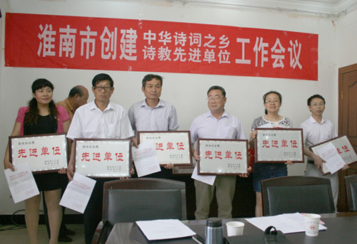 6月11日上午,淮南市創(chuàng)建中華詩(shī)詞之鄉(xiāng)、詩(shī)教先進(jìn)單位工作會(huì)議在鳳臺(tái)縣總工會(huì)四樓會(huì)議召開(kāi),會(huì)議由淮南煤礦詩(shī)詞學(xué)會(huì)副會(huì)長(zhǎng)青和平主持。舜龍公司作為安徽省中華詩(shī)教先進(jìn)單位、淮南市詩(shī)教先進(jìn)單位受到大會(huì)表彰。會(huì)上,淮南市硤石詩(shī)詞學(xué)會(huì)會(huì)長(zhǎng)周文龍作了工作講話;市文聯(lián)黨組書(shū)記、主席楊天超宣讀了市關(guān)工委、市文聯(lián)關(guān)于表彰淮南市詩(shī)教先進(jìn)單位的決定,并向獲獎(jiǎng)單位頒發(fā)了獎(jiǎng)牌; 淮南市硤石詩(shī)詞學(xué)會(huì)會(huì)長(zhǎng)周文龍代表安徽省詩(shī)詞學(xué)會(huì)宣讀了關(guān)于表彰安徽省中華詩(shī)教先進(jìn)單位的決定,并向獲獎(jiǎng)單位頒發(fā)了獎(jiǎng)牌;市關(guān)工委常務(wù)副主任楊映松作了總結(jié)講話。