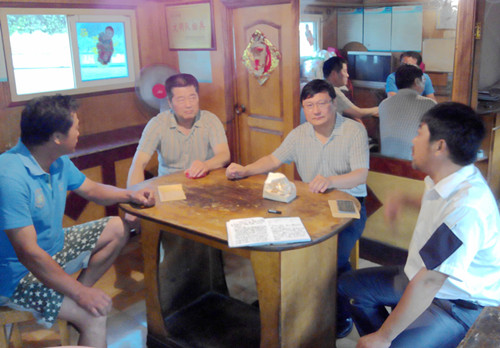 馬書記現(xiàn)場(chǎng)聽取船隊(duì)長(zhǎng)匯報(bào)