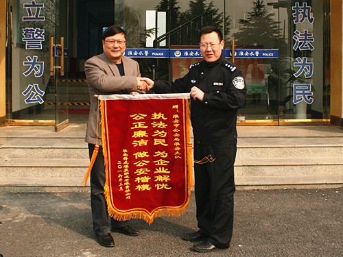 3月25日,舜龍公司總經(jīng)理馬剛代表公司,帶著“執(zhí)法為民,為企業(yè)解憂;公正廉潔,做公安楷模”的錦旗,專程趕到淮安市公安局水上警察支隊(duì)淮安大隊(duì),向警務(wù)人員給予公司的大力支持和幫助表達(dá)由衷的感謝之意。