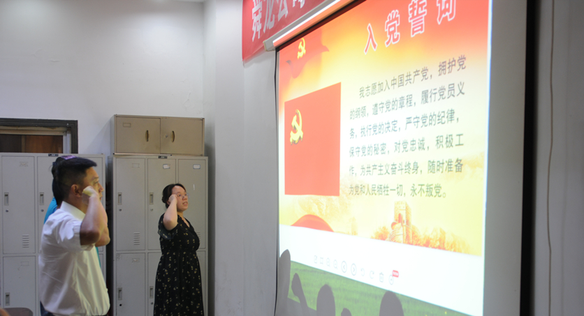 (會(huì)上公司今年新發(fā)展的四名預(yù)備黨員面向黨旗進(jìn)行了莊嚴(yán)宣誓)