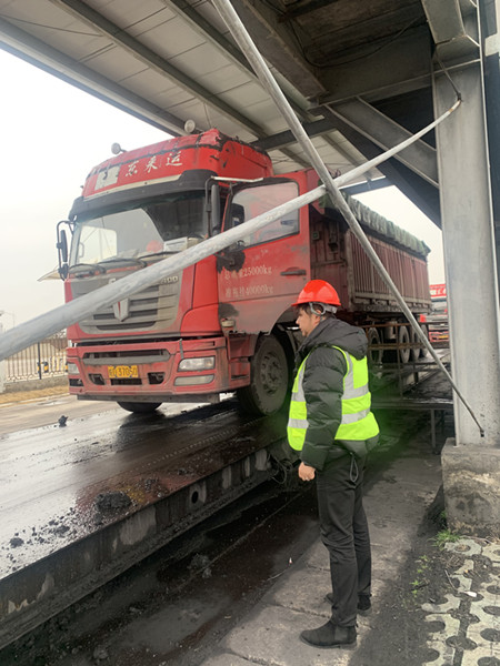 黃飛在鵬源碼頭對(duì)運(yùn)輸車輛進(jìn)行過(guò)磅
