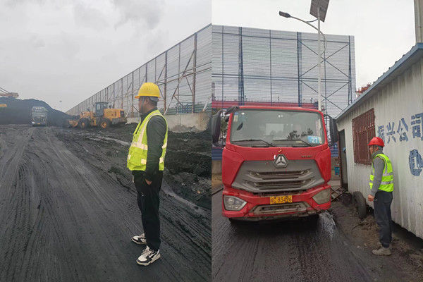 彭坤在淮浙電廠監(jiān)督返程煤炭接卸情況、陳鵬飛在平圩電廠接卸返程煤炭
